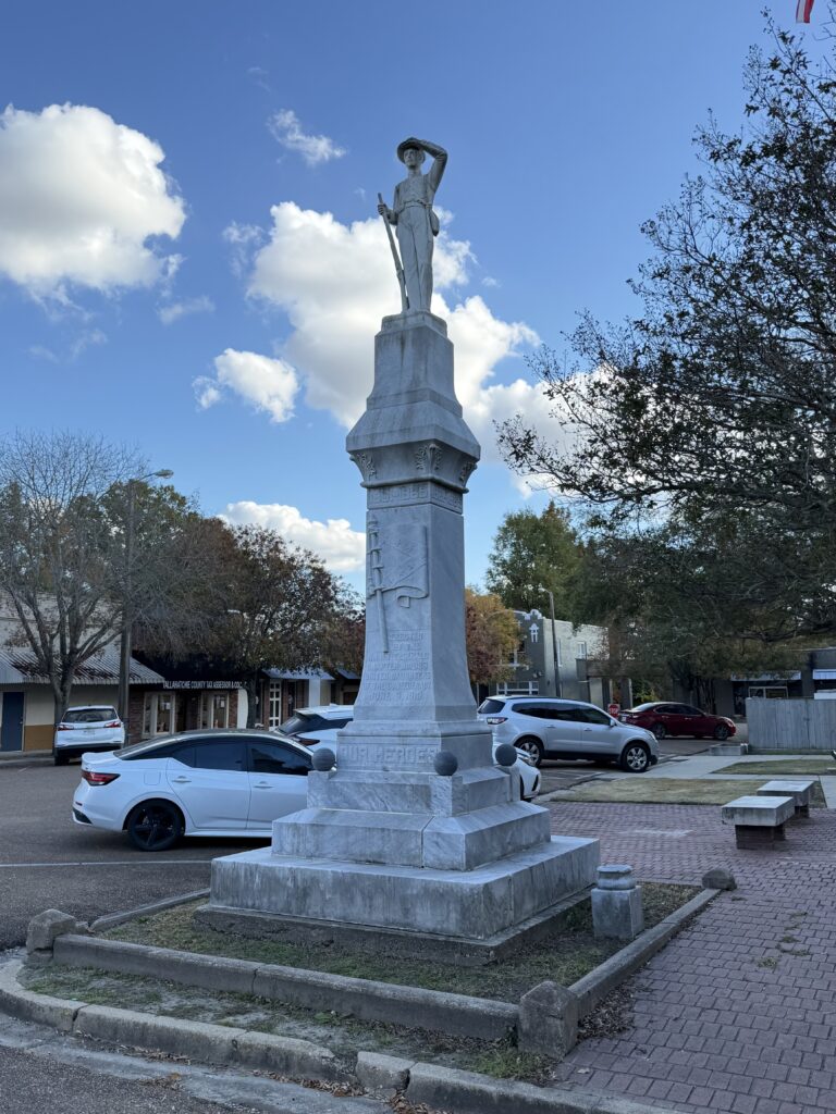 This sounds more mild and tempered than the experience: in one video, there’s a man, referred to as “Joe Lee” wants to drag the memorial sign in front of the courthouse out by tying it to his truck and dragging it out of the ground. He is reported to have shouted to the official: “Why do you keep talking about old ghosts like these?” The story turns; he is reconciled; his wife provides the fabric for the rededication banner. The message is, if we just talk to each other, we will find common ground.